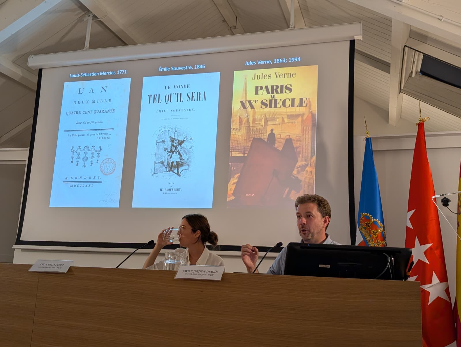 La sesión de tarde estuvo dedicada a esas otras ilusiones que excedían el ámbito territorial madrileño. Abrieron la sesión Celia Vega y Javier Ortiz Echagüe con un completo trabajo sobre la obra de Albert Robida, un ilustrador francés del siglo XIX que supo anticiparse, con una obra visionaria, a muchos de los avances técnicos que tuvieron lugar posteriormente y sus consecuencias catastróficas. Miguel Sánchez-Moñita y Tomás Zarza fueron los encargados de desvelar el paisaje contemporáneo, abriendo el camino a muchas de las reflexiones y preocupaciones artísticas de este género en el mundo del arte más reciente. Para finalizar, Laura Berrocal Contreras puso el broche final a las jornadas con una exposición a mitad de camino entre la teoría y la práctica que suponía una invitación a la percepción sensorial de los paisajes marginales del mundo contemporáneo.