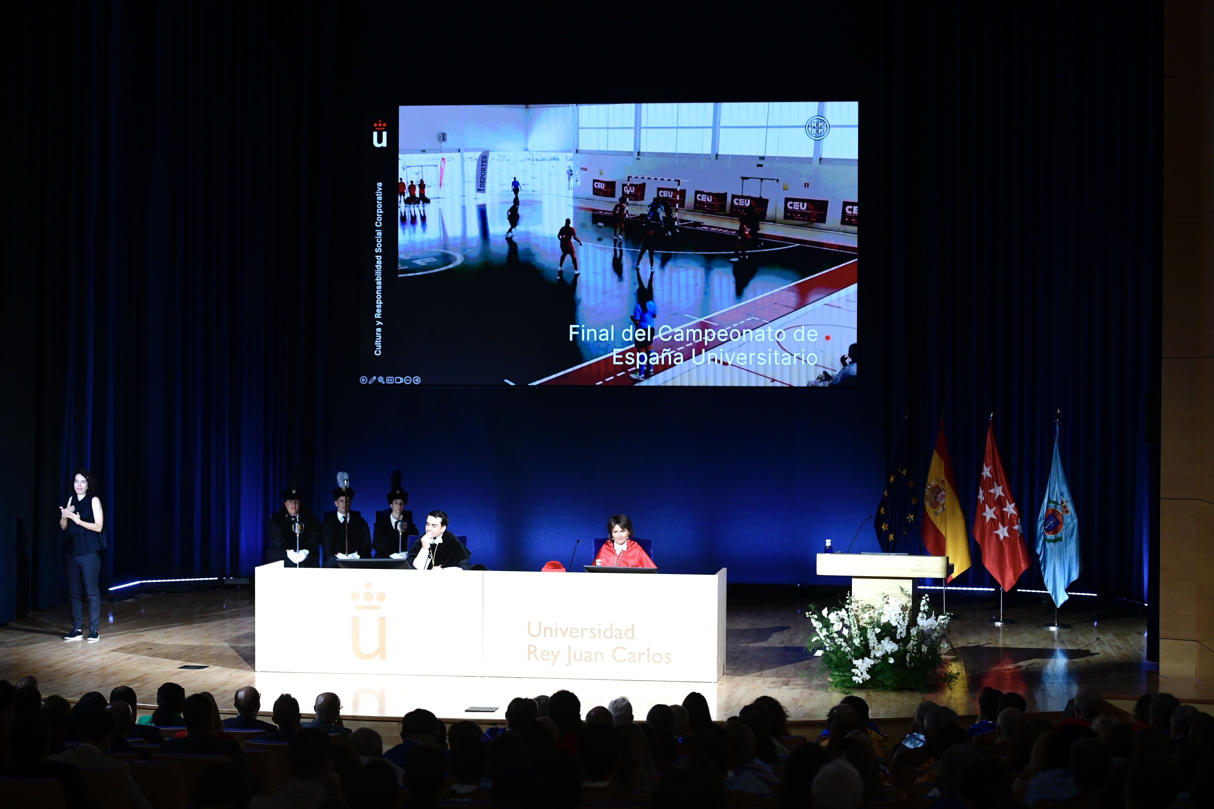 Como siempre, el acto ha estado amenizado por la Orquesta y Coro de la Universidad Rey Juan Carlos que ha interpretado el himno universitario ‘Gaudeamus igitur’.