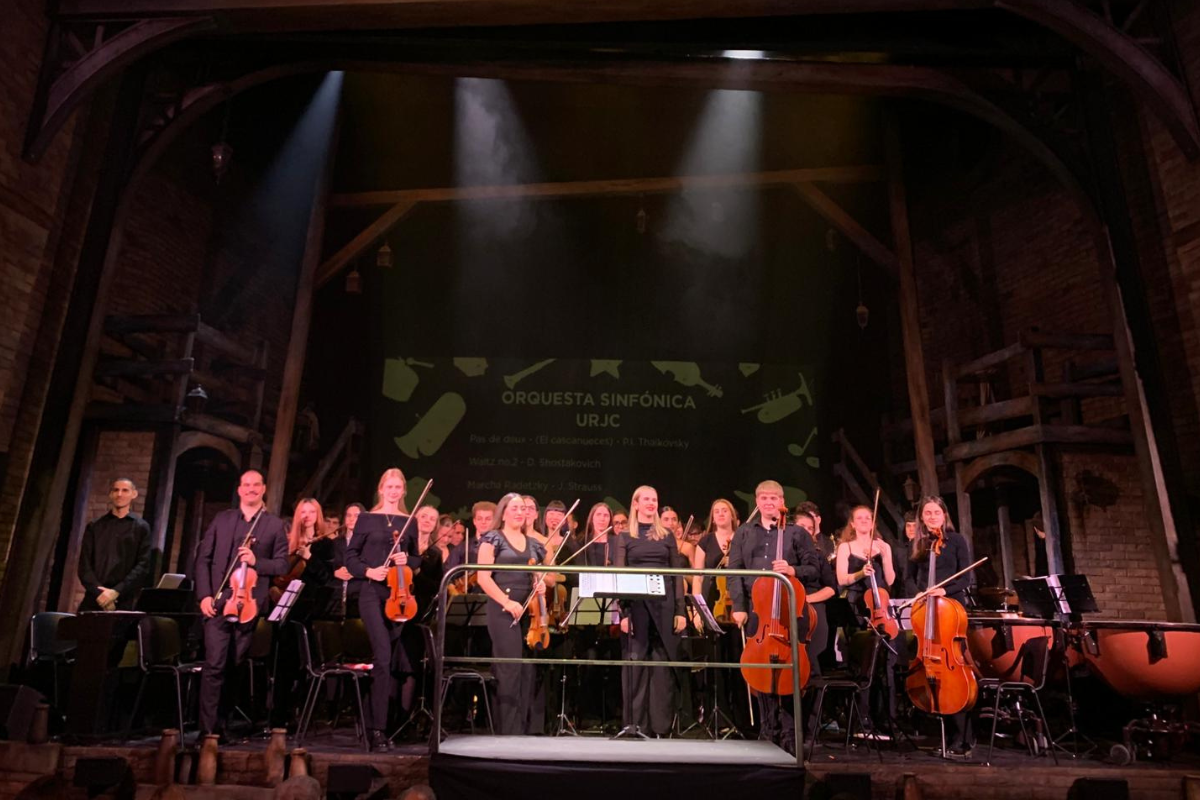 A continuación, ocuparon el escenario la totalidad de la orquesta sinfónica de la universidad, quienes magistralmente interpretaron ‘Pas de deux (El cascanueces)’ de P.I Tchaikovsky, Waltz no 2 de D. Shostakovich y ‘Marcha radetzky’ de J.Strauss.Entonces tomó la palabra del Rector de la URJC, Abraham Duarte, que quiso aprovechar la ocasión para “felicitar al aula de música y a Gemma Camps por este mítico concierto y a las personas detrás de las cortinas como Javier Otero, Elena Díaz y todos los componentes del Vicerrectorado de Responsabilidad Social, Cultura y Deporte. Os deseo todos que paséis unas felices fiestas de navidad con vuestros familiares y amigos y que tengáis un feliz año 2026”.