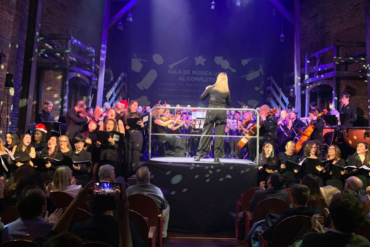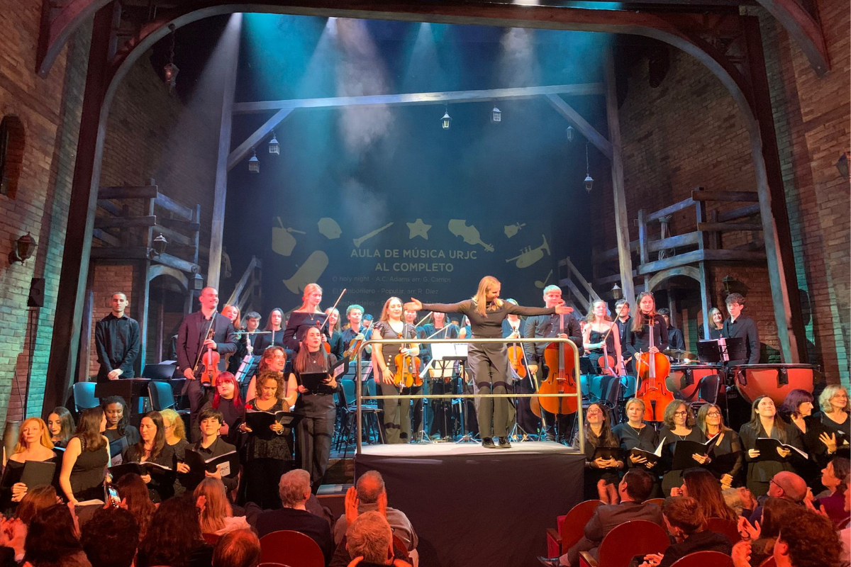 El colofón ha sido poder disfrutar de la totalidad del aula de música de la URJC en escena con un magnífico pase de ‘O holy night’ de A.C. Adams arreglado por la propia Gemma Camps, ‘El Tamborilero’ arreglado por R. Díez, ‘Adeste Fideles’ arreglado por J. Alonso y la icónica ‘Jingle Bells’ de J. Pierpoint. Tras este pase final, la totalidad del público que llenó el teatro de La Latina se puso de pie para aplaudir y ovacionar a los músicos, ha sido un broche de oro de una velada que tanto los asistentes -que también cantaron animados por la directora- como los artistas recordarán.
