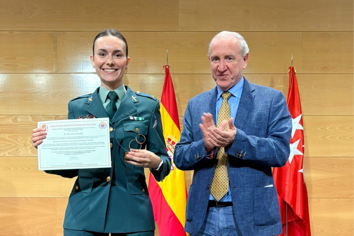 Durante el acto se ha concedido además el Reconocimiento de Compromiso y Responsabilidad Social OEX 2025 a Félix Durán Garrido, capitán y jefe de la Sección de Trata de Seres Humanos de la Unidad Central Operativa de la Guardia Civil. El galardón distingue su trayectoria en la protección de víctimas y su contribución al fortalecimiento de las estrategias de lucha contra este delito. El homenajeado, que ha participado en una mesa redonda junto a Carolina Sánchez Bermejo, fundadora y directora de Amar Dragoste, y Ezequiel Escobar Bellshaw, director ejecutivo de la organización contra la trata FIET, ha recibido su reconocimiento desde Brasil, país en el que se encuentra destinado recientemente como jefe de la representación española en el Centro de Cooperación Internacional de Río de Janeiro. El reconocimiento ha sido recogido por la teniente Sonia Hurtado al no poder estar presente el capitán.