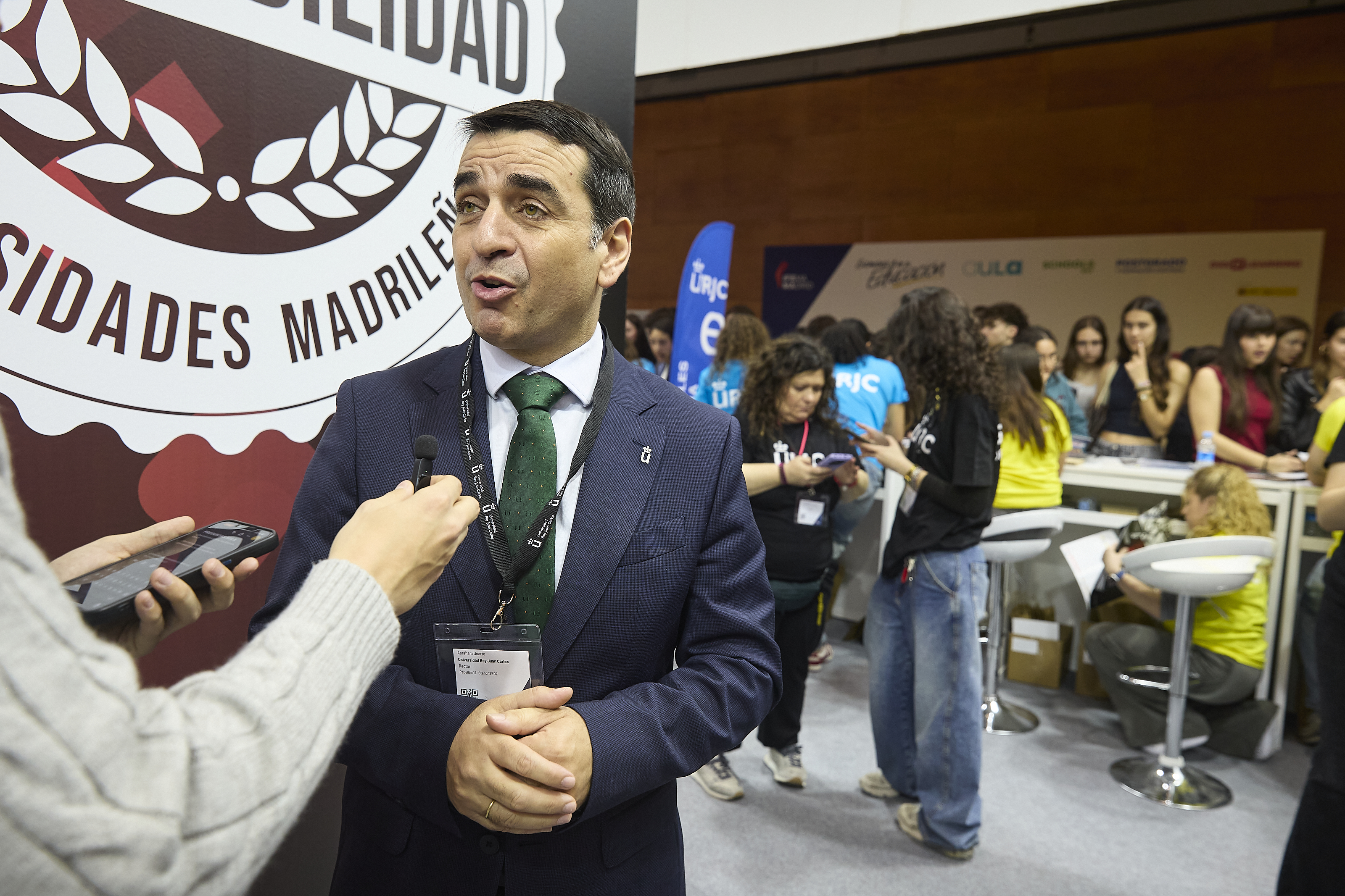 El vicerrector de Estudiantes, Empleabilidad y Emprendimiento, Julio Ramiro, pone el foco en el liderazgo de la URJC en inserción laboral, destacando que la URJC es la universidad pública número uno de la Comunidad de Madrid en empleabilidad. Un mensaje que la universidad ha querido visibilizar especialmente en esta edición de la Feria de la Educación.