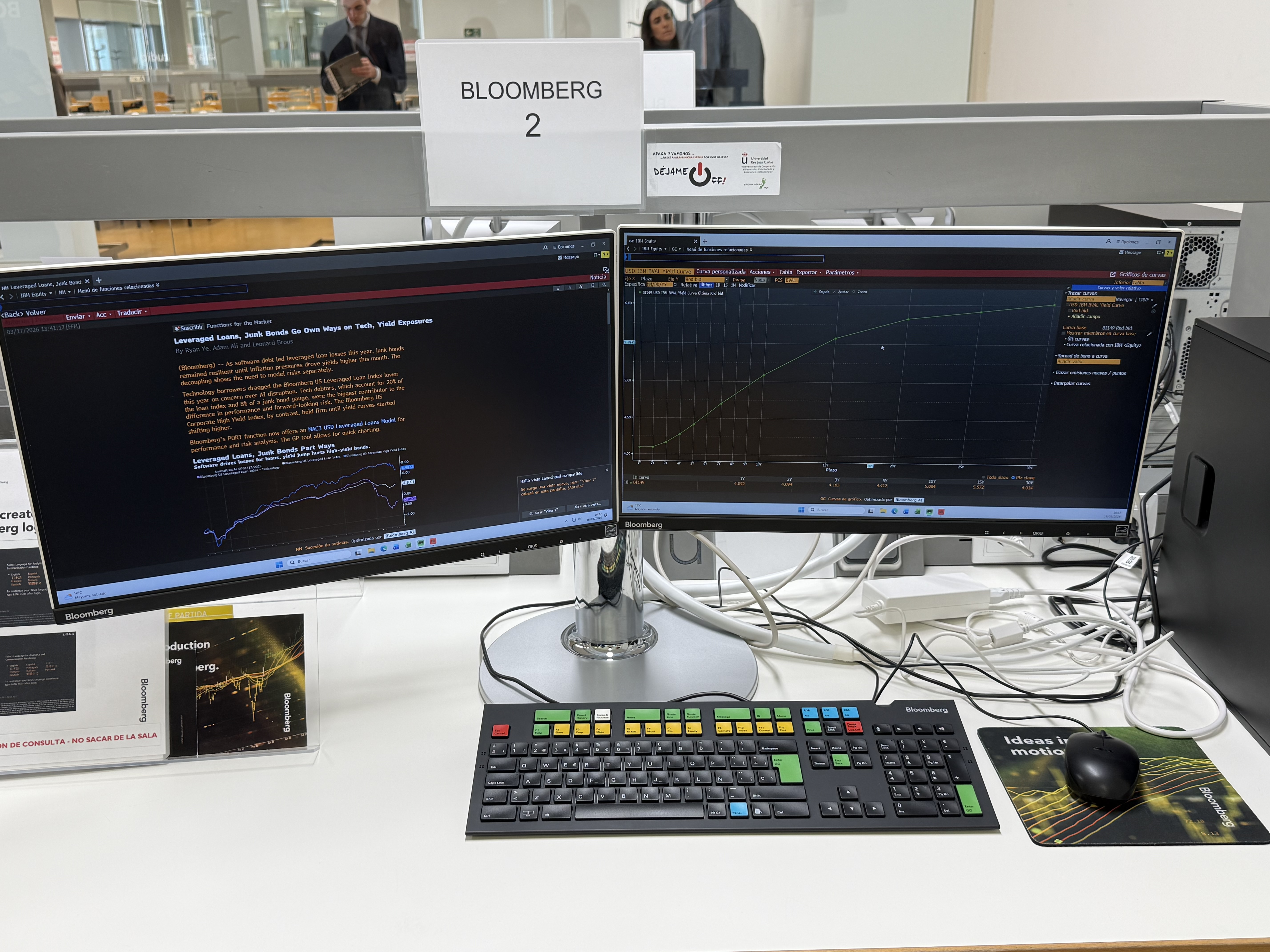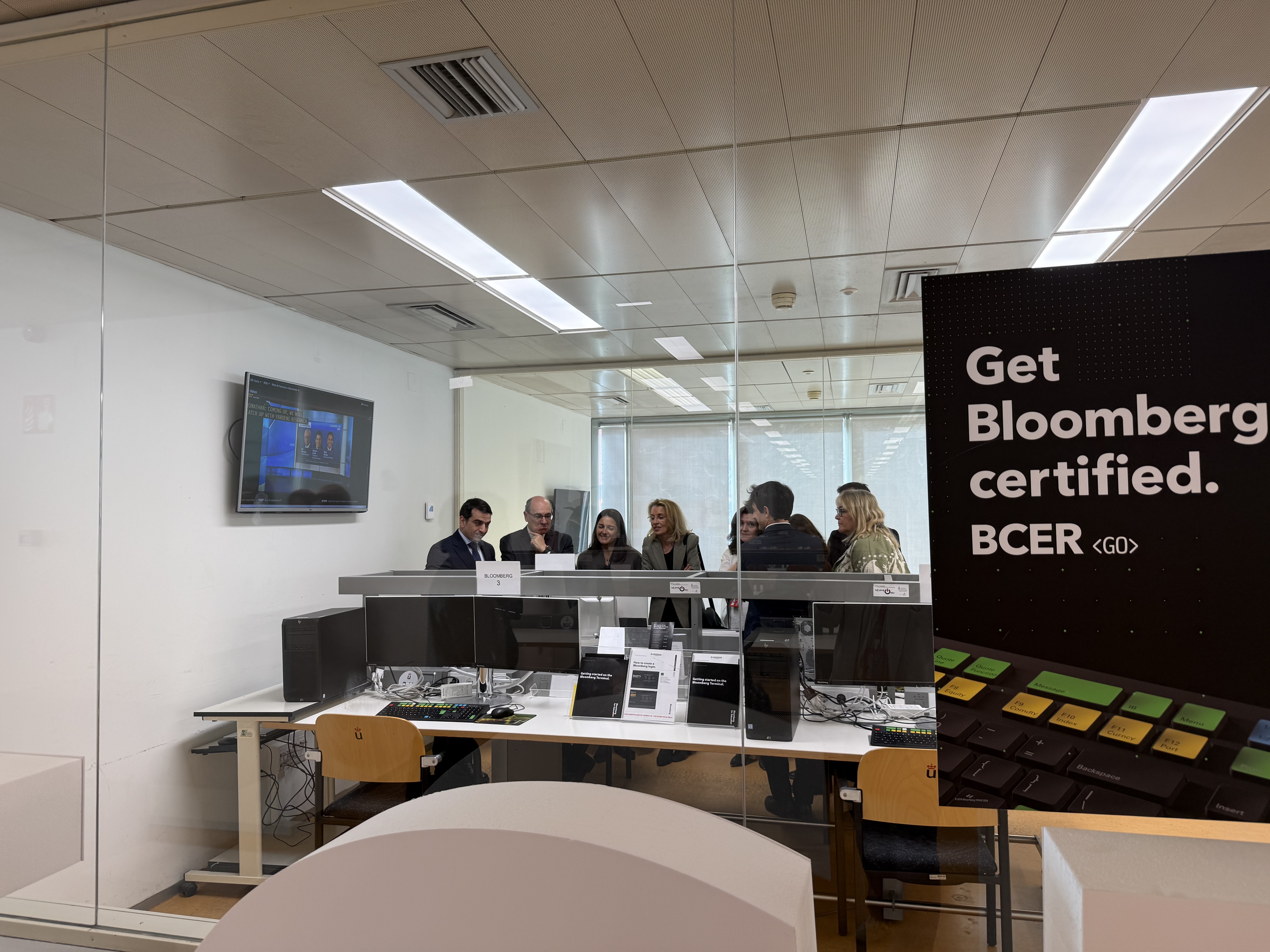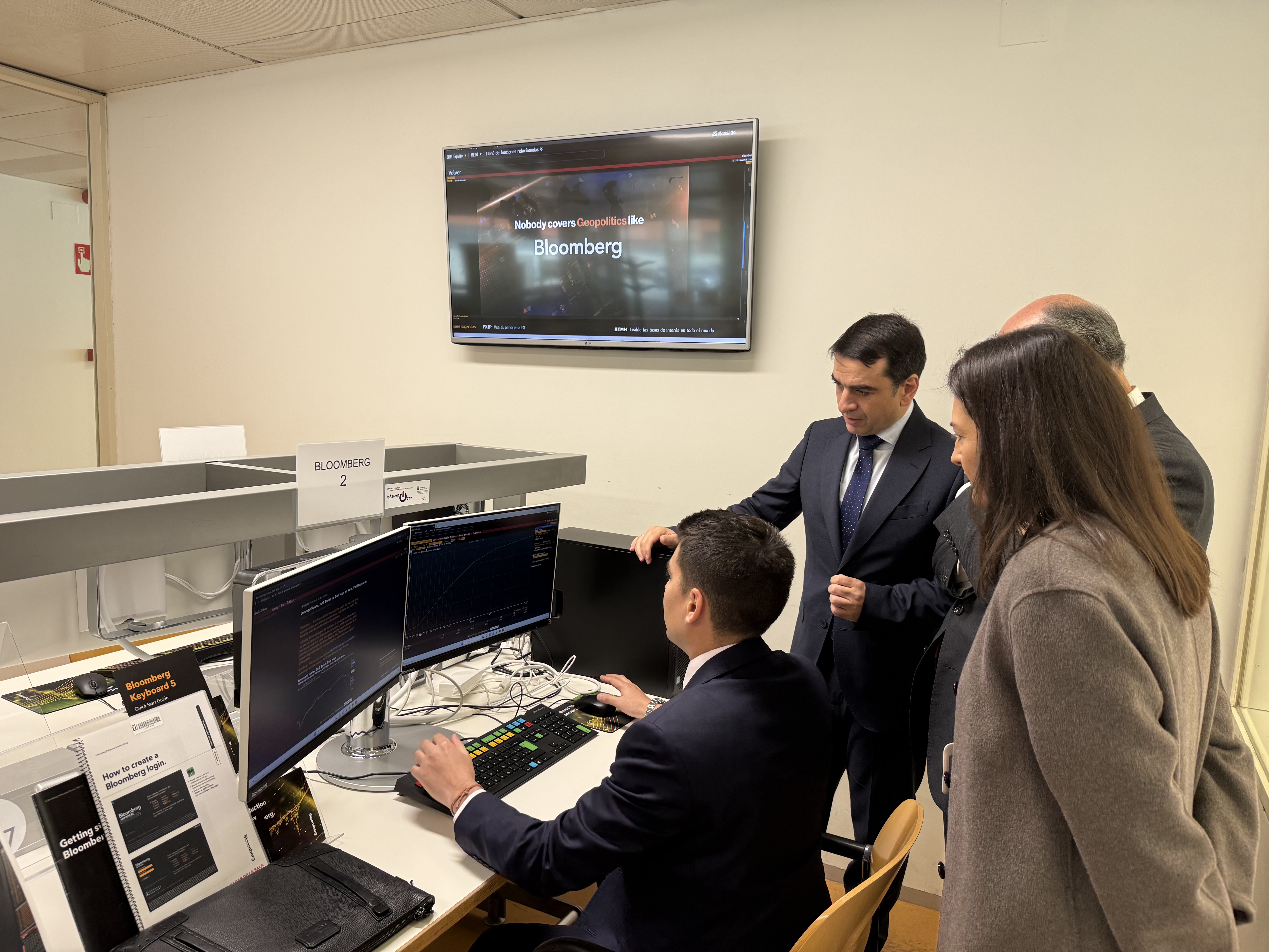 La puesta en marcha del Bloomberg Lab ha sido posible gracias a un trabajo coordinado entre el Decanato de la Facultad de Ciencias Económicas y Empresariales, la Dirección de la Biblioteca de Vicálvaro, la Dirección General de Bibliotecas, y el Vicerrectorado de Investigación, Doctorado y Biblioteca, con la colaboración de Gerencia de Campus y el Departamento de Informática.