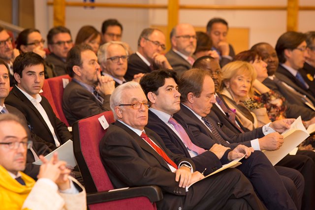 Durante el acto, el profesor Pedro Alonso ha agradecido a la Universidad, especialmente a su rector y al profesor Ángel Gil de Miguel, que ha leído la laudatio que ha precedido a su intervención, el honor de ser investido doctor “honoris causa”.