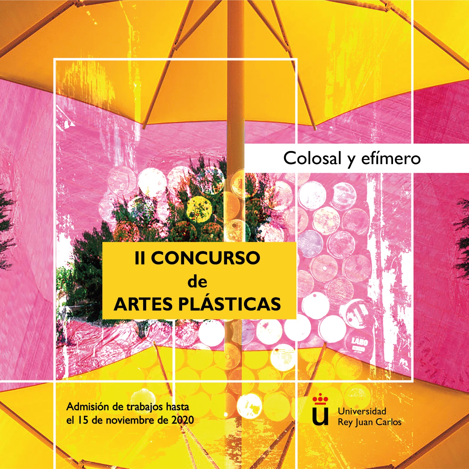 Por último, pero no por ello menos importante, está el II Concurso de Artes Plásticas URJC, denominado “Colosal y Efímero”, abierto como siempre para toda la comunidad universitaria de la URJC. El objetivo de esta competición es la creación de un collage, manual o digital, utilizando motivos, recortes de imágenes o reproducciones de la obra de Christo y Jean Claude, la famosa pareja artística creadora de arte contemporáneo. Los trabajos a entregar deben, de nuevo, ser originales e inéditos y solo se permitirá remitir una pieza. El tamaño máximo permitido para esta es de un A3 (42x29,7 cm) y el soporte es libre, se puede llevar a cabo tanto en papel, como en cartón, lienzo, entre otros. Para enviarla, será necesario escanearla o fotografiarla y comprimirla en un archivo JPG o TIFF, con una resolución alta. Entre los miembros del jurado, se contará con la presencia de Pablo R. Prieto Dávila, Coordinador de Artes y Humanidades y Raquel Sardá Sánchez, Coordinadora del Grado en Bellas Artes. Los premios a los que aspirar son los mismos que en Fotografía y Relato Breve.