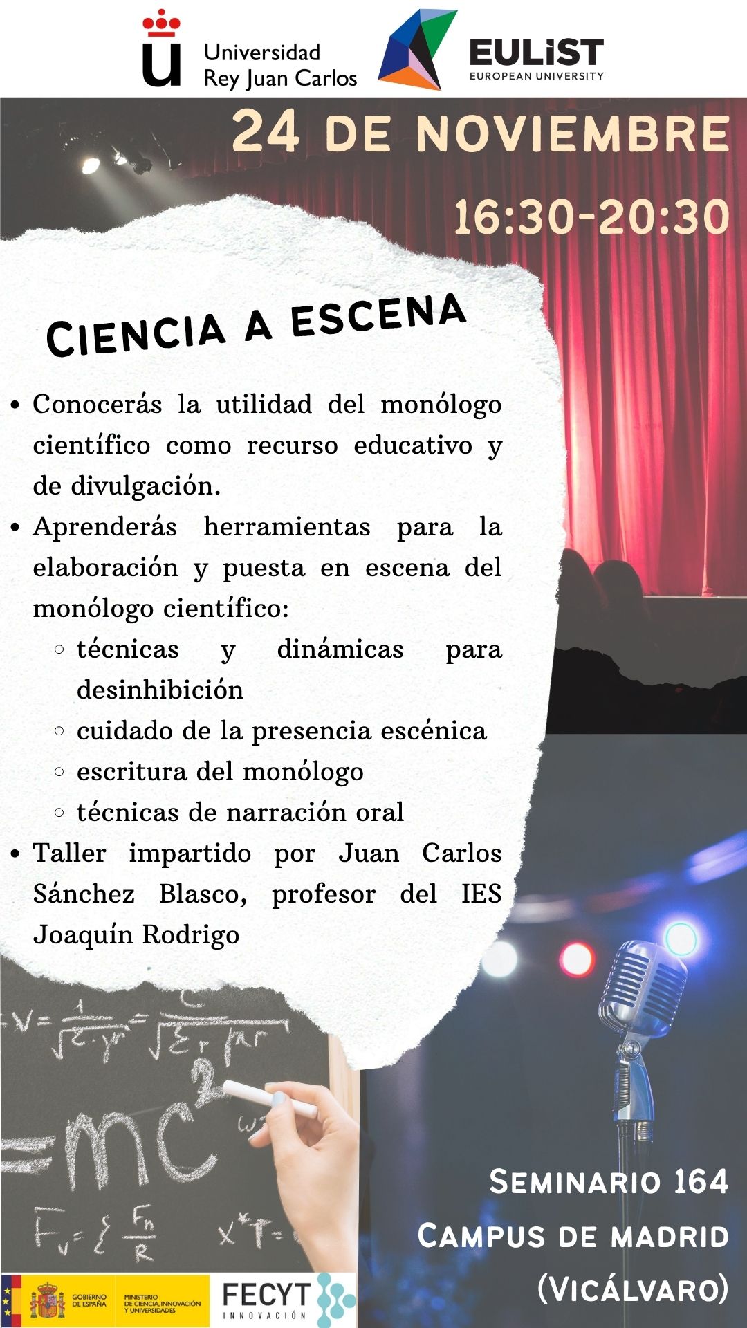 El objetivo del taller es dar a conocer la utilidad del monólogo científico como recurso educativo y de divulgación. Para ello: